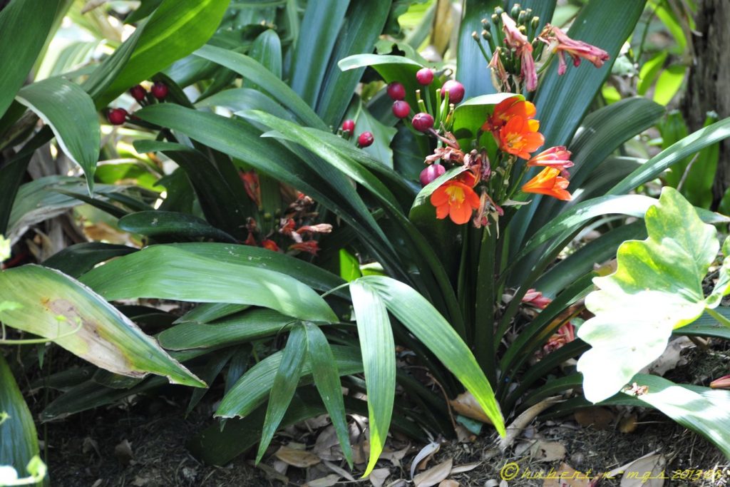 Chamaedorea palms and Yucca filifera from Central America flourish alongside phormiums and cordylines from New Zealand and ‘Iron Bark’ eucalyptus from Australia. From South Africa, bulb under-planting included crinums, agapanthus, clivias and the unusual Boophone disticha, one of the most poisonous plants in the world.