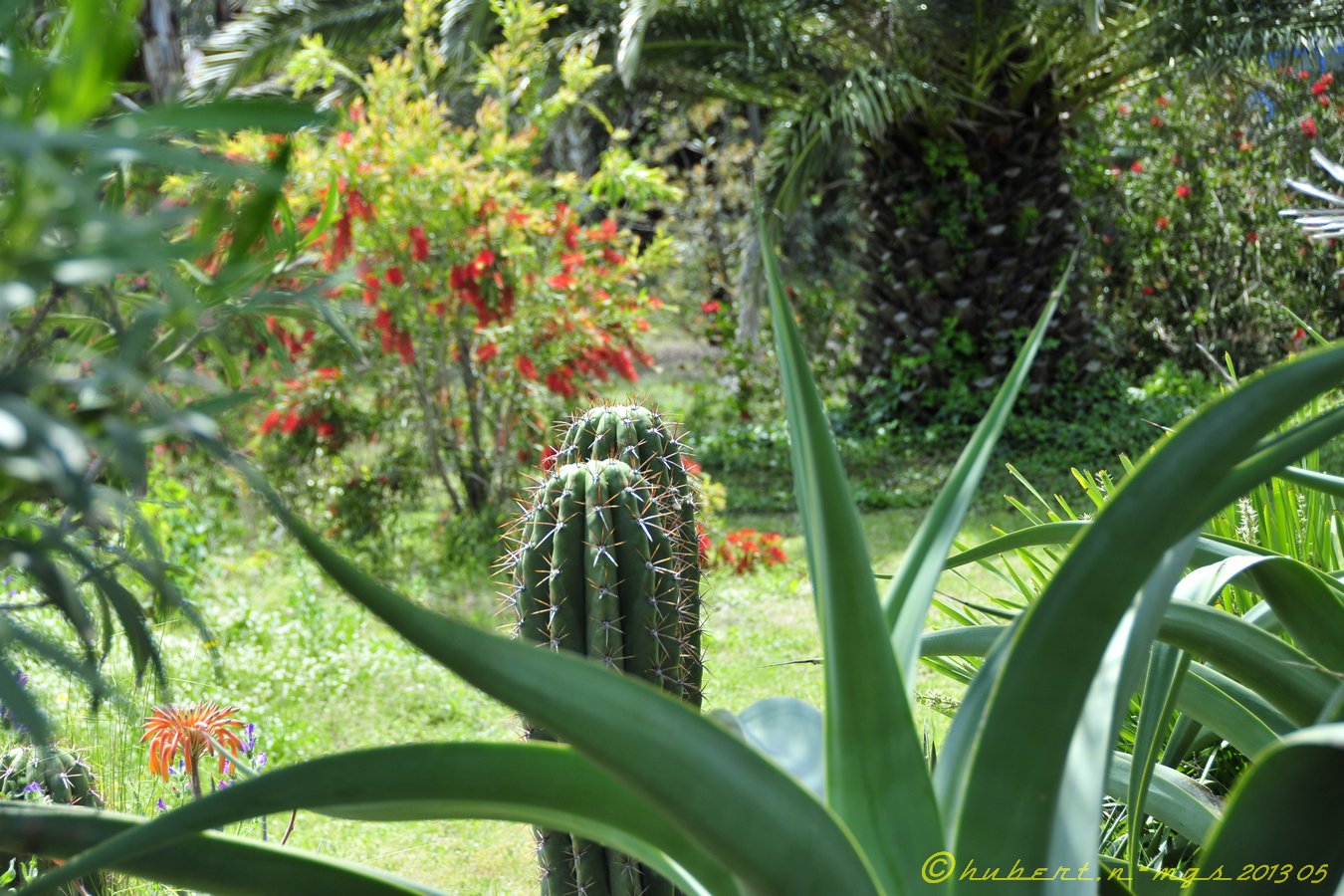 Thanks to Pierre’s planting of a protective canopy, the previously agricultural plot now provides a hospitable environment for a variety of tropical and xerophytic plants from every continent, informally organised according to their geographic origins.
