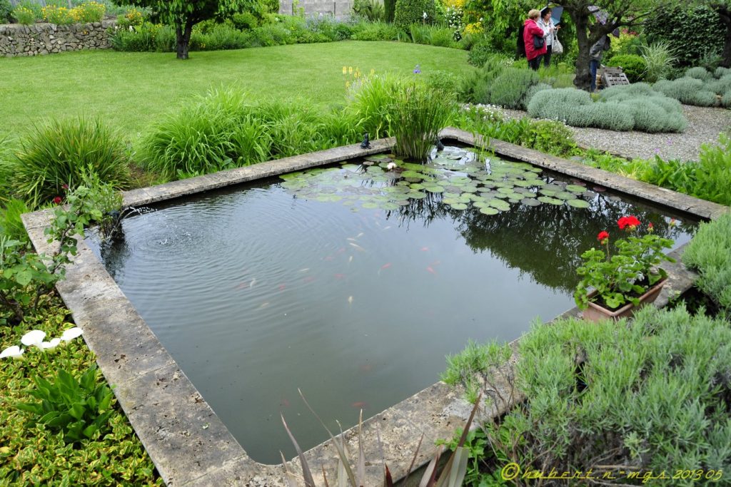 The mechanism was beyond me but I gathered that the changes in water level are not great enough to upset fish or plants and that a small fountain maintains aeration and deters mosquitoes. The result of all this water is luxuriant late spring foliage, plenty of colour already and clearly plenty more to come.