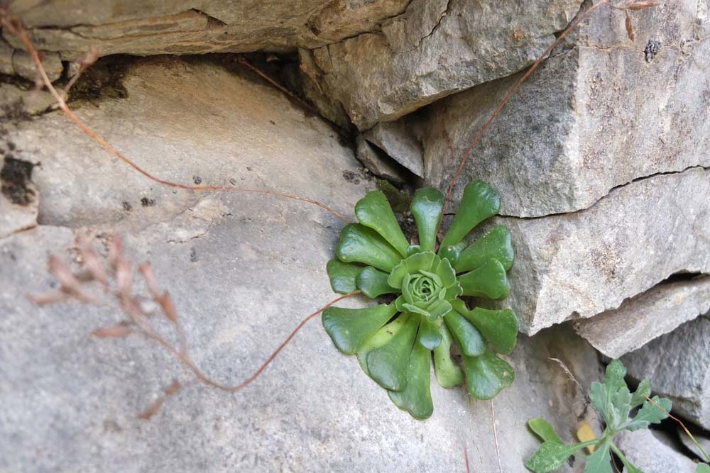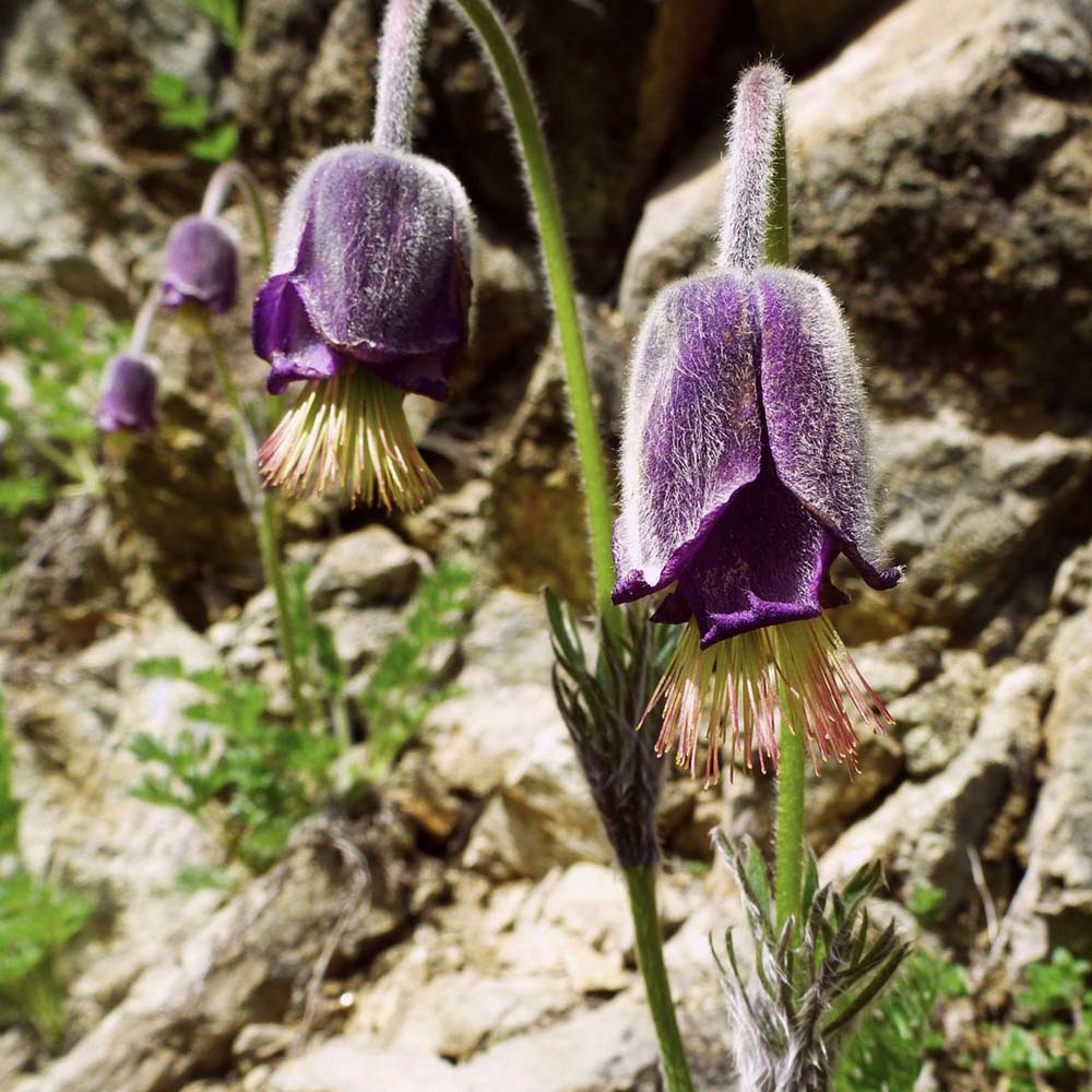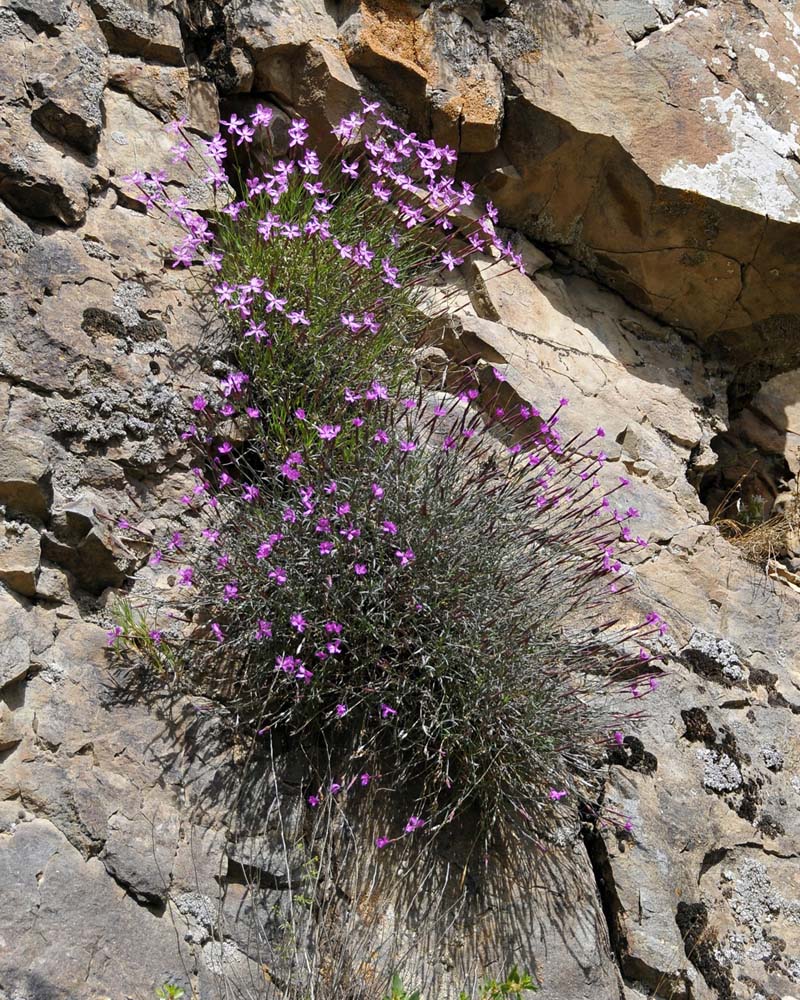 Stop on the second hairpin bend of the descent. Flowers growing on a very steep slope.