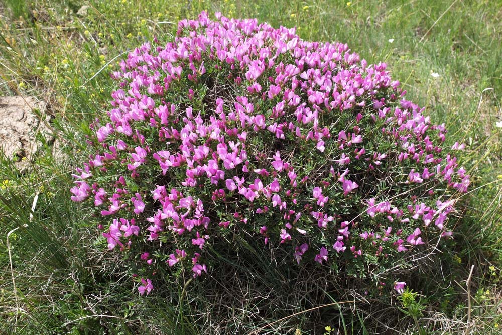 Pentes couvertes par des coussins rose foncé d’Onobrychis cornuta