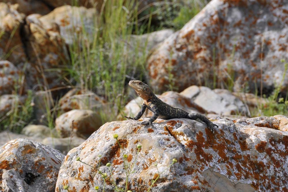 In a rocky area with numerous agamid lizards basking on the rocks / Dans une zone plus rocailleuse avec de nombreux « lézards » sur les rochers