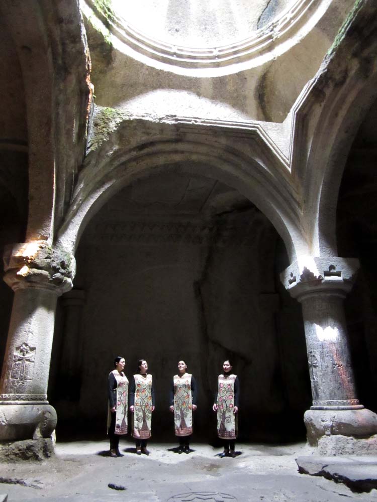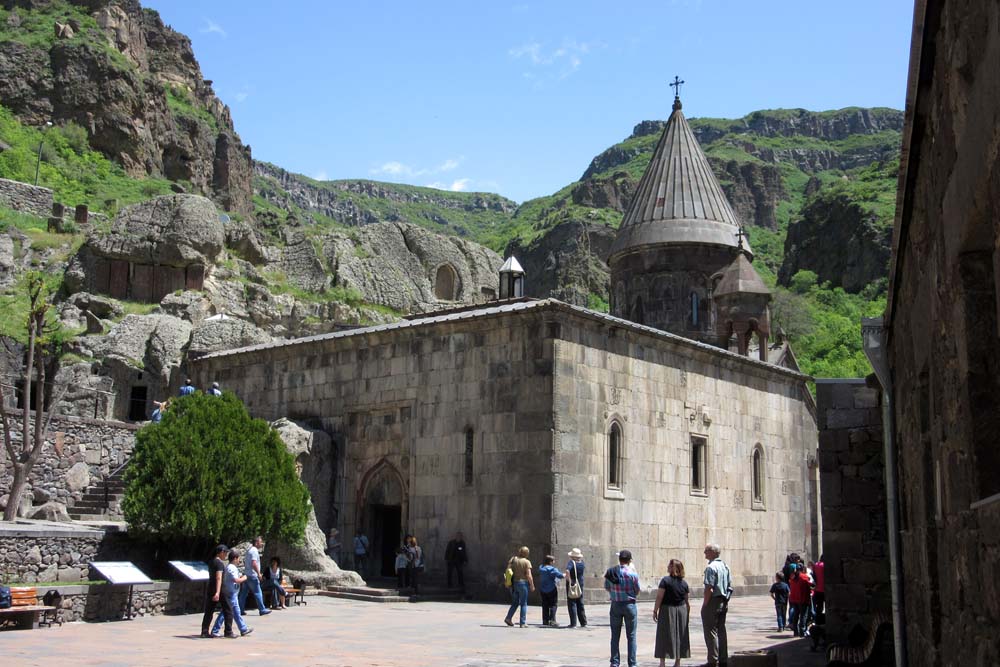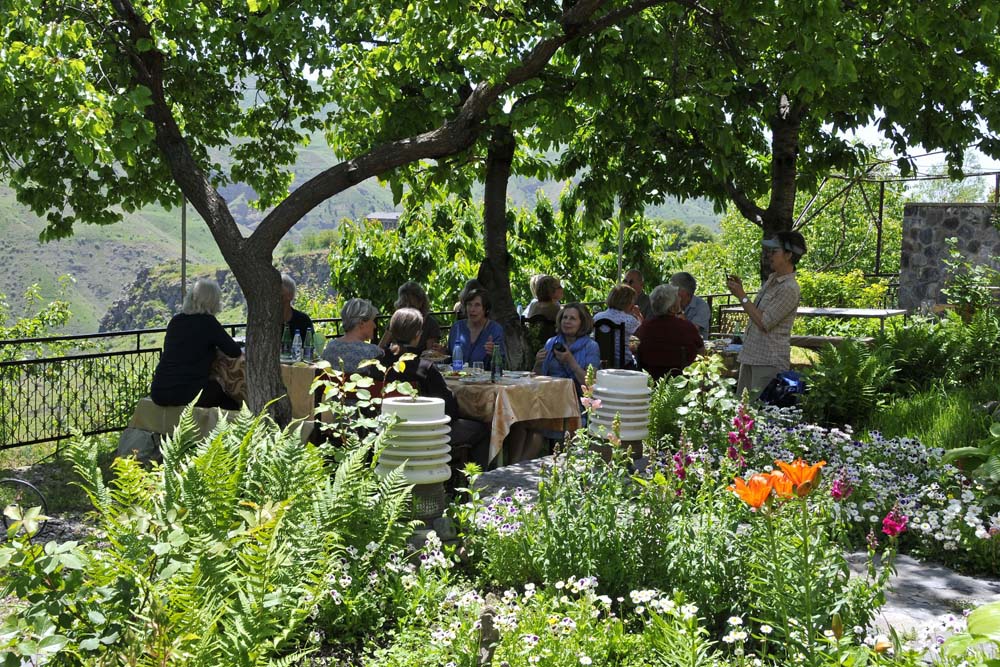 A visit to the Geghard monastery was followed by lunch in a private house set above the valley on the edge of which stands the Garni temple.