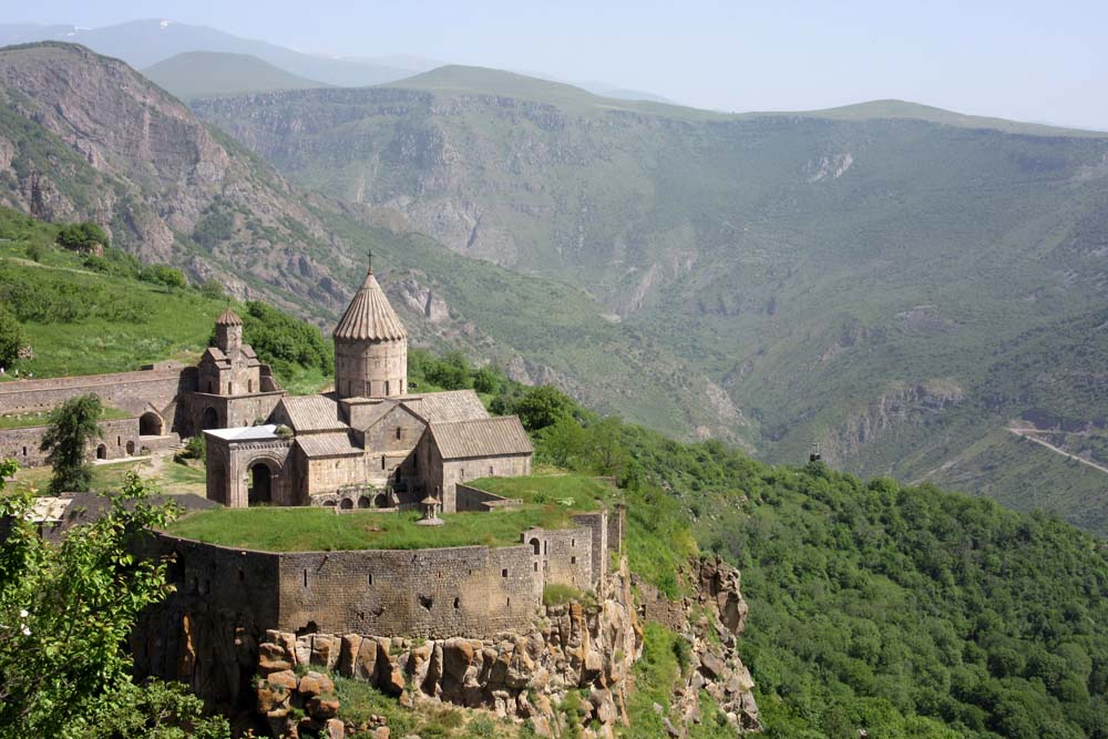 we set off for the Tatev monastery, sited, majestically, on its rock and backed by a cirque of mountains, many over 3000 meters.