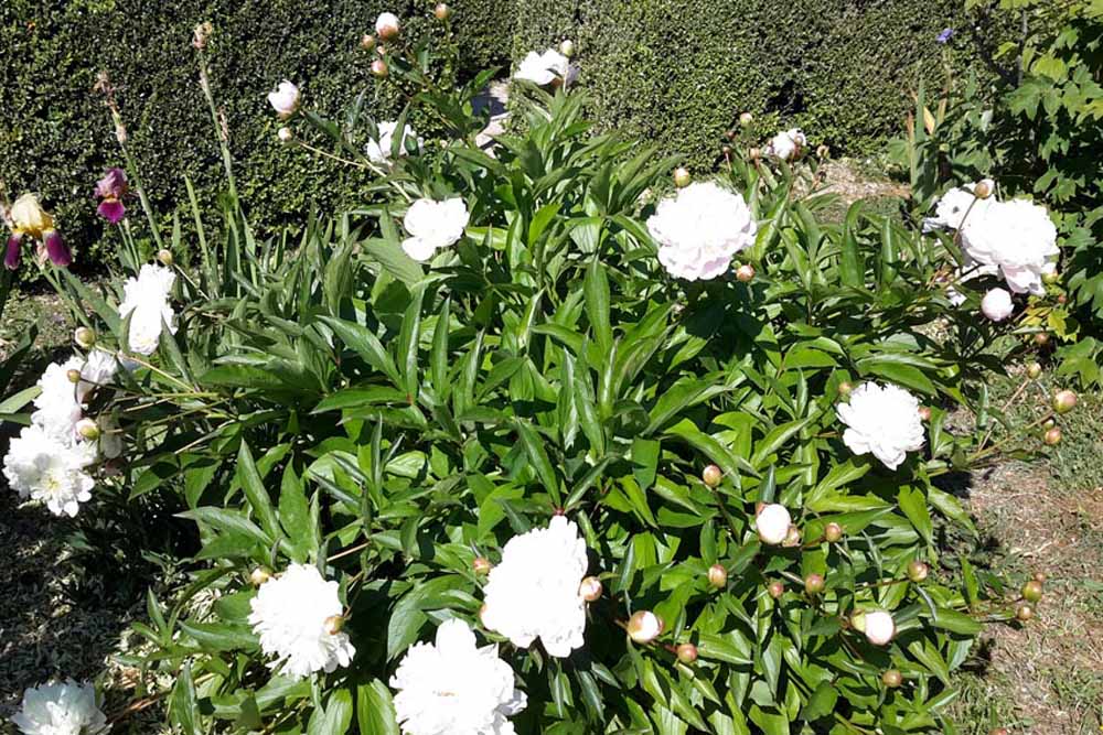 There is a great variety of herbaceous plants, roses, irises interesting shrubs and trees. In fact, Mme Barrault regrets that the garden was called Mas des Pivoines, as visitors come at a time when little else is in flower. Both are very keen gardeners, and both accompanied us round with many anecdotes and good descriptions. A gardening tradition goes back several generations. Sometimes they did not know the names of plants, as they had been inherited from Mme Barrault’s family – ‘cela vient de ma grand-mère, non je crois que c’était mon arrière-grand-mère’. They water sparingly.