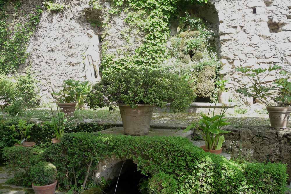 There is water, and the sound of running water – fountains, bassins, springs, rills along the paths – everywhere.