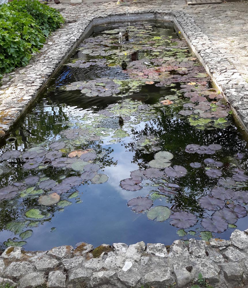 There are also many simple plants, which are very effective. We liked the erigeron – sometimes on its own, in a beautiful stone pot, and round a low fountain. Again from the prospectus: “L’un des plus beaux effects du jardin est l’alternance de simplicité rustique et de raffinement géometrique” (a particularly beautiful effect is created by the contrast between rustic simplicity and refined geometric shapes).