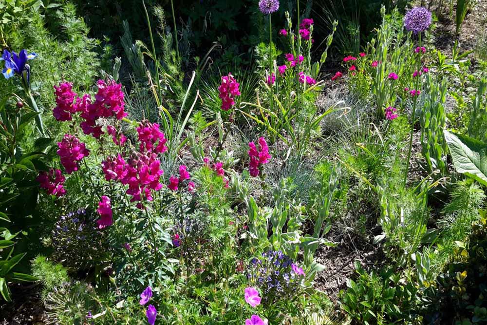There are good iris de collection (each with a different perfume according to M Barrault), some from the nursery Iris en Provence in Hyeres and lots of buddleias, flowering at different times. We liked a carpet of brilliant yellow South African asters under a cedar tree, which needed no watering and could happily be trampled underfoot.