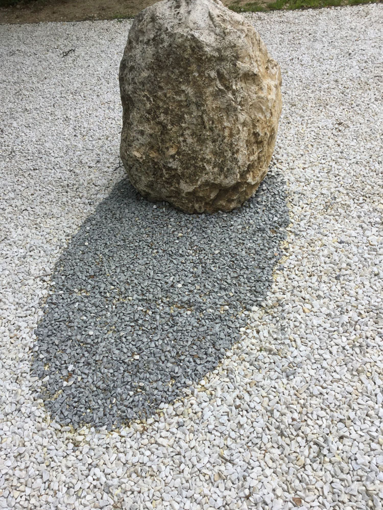 South Korean artist Lee Kufans’ ‘House of Air’ questions our perceptions of the natural and the man-made world. In front of the house, a large stone found nearby on the property sits in a forecourt of pale coloured gravel with a dark shadow. But is it a shadow? Darker coloured gravel defines what our eye perceives to be a shadow. And when the sun shines, a second shadow is another contrasting, moving element.