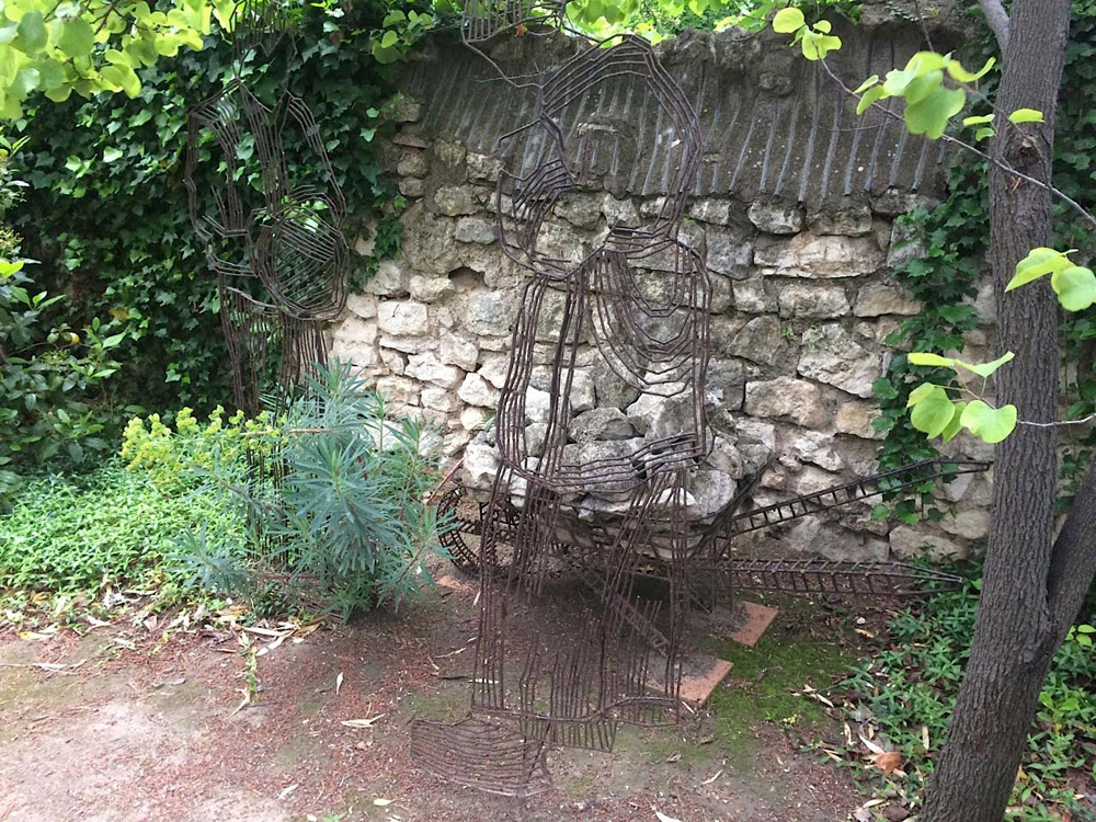 In the village of Éguilles, near Aix-en-Provence, there is a garden belonging to the artist Max Sauze which was awarded the label ‘jardin remarquable’ by the Ministry of Culture in 2005. Our visit started when we stepped into Max’s art gallery and were warmly welcomed by his wife, Anne Sauze-Leberre. We were immediately intrigued by his highly imaginative work and the iconic lamps made of bent aluminium strips, lamps and steel wire. These lamps helped to establish Max’s reputation as an artist and master of design during the 1960s after he arrived in France from Algeria, where he was born.