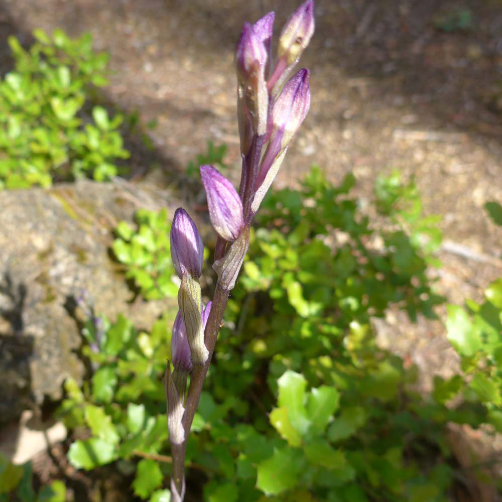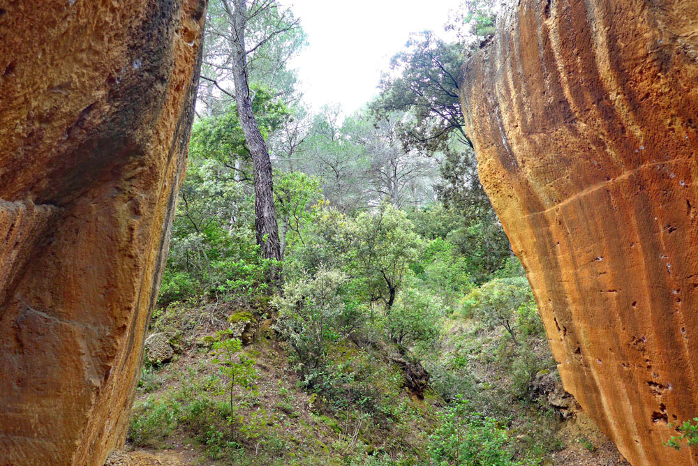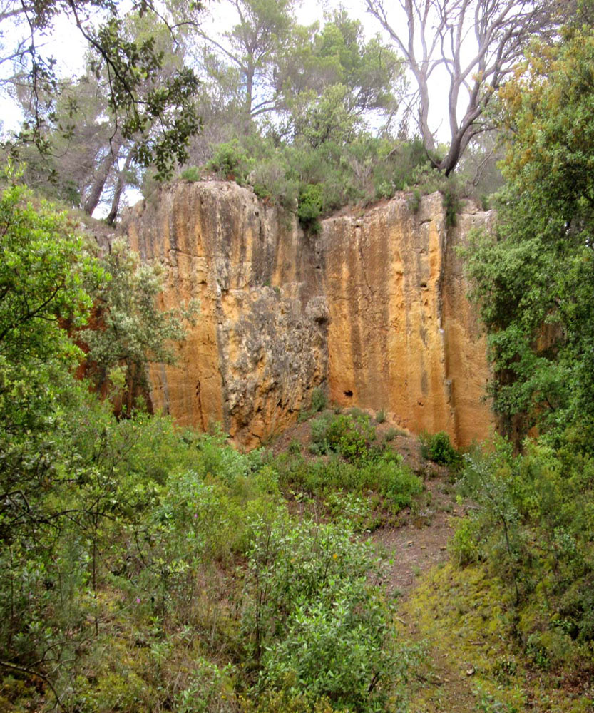 The quarries extend over seven hectares and from the edge there are expansive views over the plains at the foot of Montagne Sainte Victoire. The thick vegetation under the tall pine and evergreen oak trees is typical of the garrigue with alkaline soil and many interesting plants including Aphyllanthes monspeliensis, borage, Cistus albidus, Cistus salviifolius, Euphorbia serrata, Limodorum abortivum and Lonicera etrusca – to name a few.