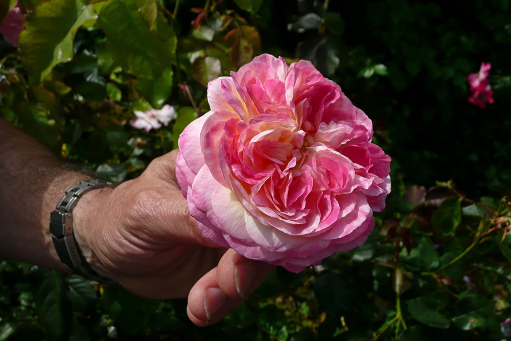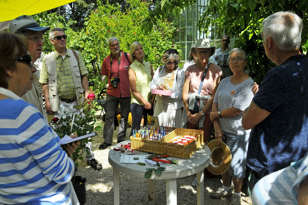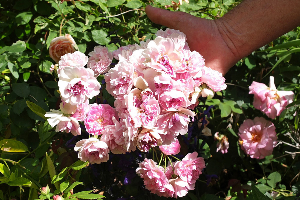 On 23 May 2017, we visited the garden-workshop of Dominique Massad in Allauch, near Marseille. He gave a demonstration of the process of hybridisation and then took us on a tour of his rose-filled garden.