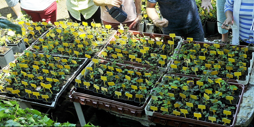 We ended our visit on the lower terraces, crowded with containers full of young rose-plants which are still under observation and which have yet to be “baptised”.