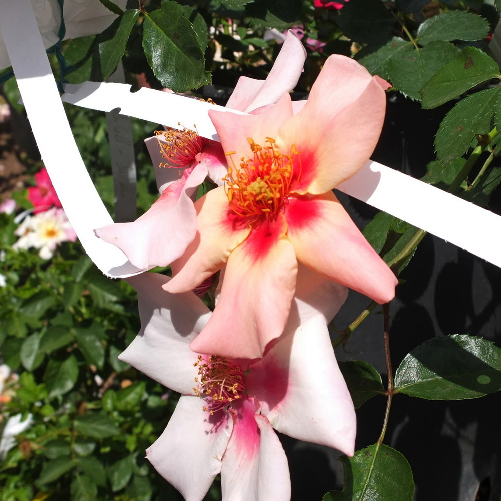 • 5-petalled roses with a blotch at the base of each petal (open flowers with a central eye).