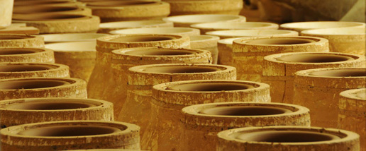 Pots stacked ready for firing