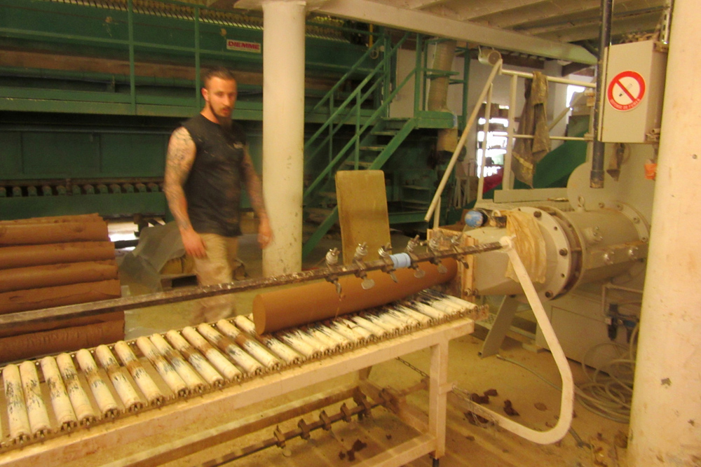 During our tour of the extensive and historical buildings which comprise the pottery we learnt that the process of creating a pot is a fascinating one: the initial clay arrives full of all sorts of debris and needs to be cleaned before use is possible. To do this, water is added and the resulting liquid is sieved finely to make barbotine which is then put through an enormous filter and the resulting paste is then extruded and cut into huge ‘sausages’. 12 tons of clay are made here in this way each day.