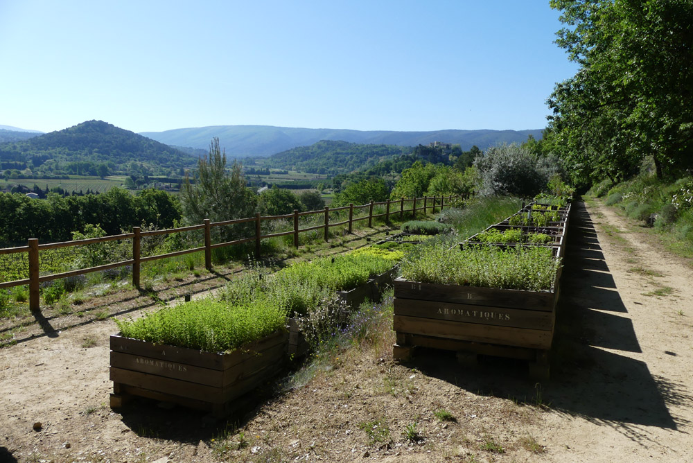 The day began at the Domaine de la Citadelle in Ménerbes, under a clear sky with hardly any wind. In the 1990s, Yves Rousset-Rouard abandoned his life in Marseille and acquired this historic domaine in order to indulge his passion: winemaking. More recently he realised his second dream, that of creating a botanical garden. Overlooking the surrounding countryside, six terraces (restanques), which date back to the 18th century, have been planted with hundreds of wild plants, grouped according to their properties: aromatic, medicinal, magical and edible.