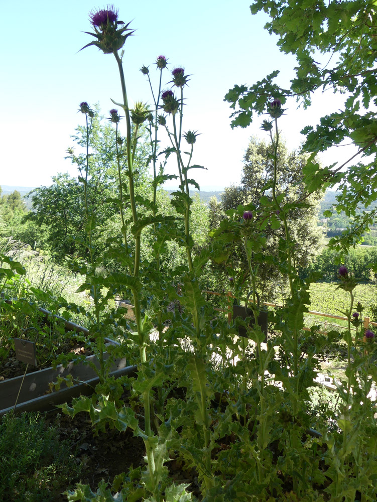 Dans le chardon-Marie, Silybum marianum L., tout est comestible, de la racine aux boutons floraux. Il faut cependant avoir la patience d’enlever toutes les épines des feuilles avant de les cuisiner.