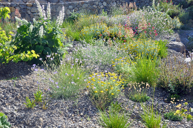 - Use drought tolerant plants such as santolina, rosemary, cistus, catananche, salvia, teucrium and stachys.
