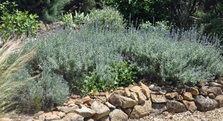 - Plantes résistantes à la sécheresse comme la santoline, le romarin, le ciste, la catananche, la sauge, le teucrium et le stachys.