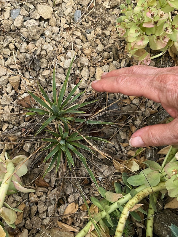 - Planté sans compost dans 50cm de roche concassée, de préférence locale, dans une dépression en forme de cuvette.