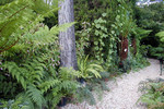 Bambous, palmiers, érables japonais, bananiers, ophiopogons, agrumes, poteries.