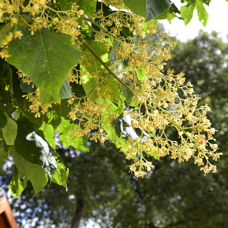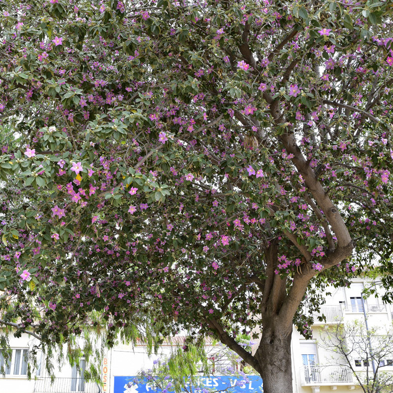 The Digue d’Orry promenade, which runs alongside the River Têt, is planted with a host of exotic species, an invitation to take a trip around the world. Remarkable trees include Jacaranda mimosifolia with its blue flowers, Lagunaria patersonii with its countless pink flowers, Chitalpa tashkentensis with its pink trumpets and the yellow-flowered Tipuana tipu. We also saw Bauhinia variegata, Grevillea robusta, Parkinsonia aculeata, Schinus molle, Firmiana simplex, Brachychiton populneus, Tetradium daniellii or honey tree, much appreciated by bees, and large eucalyptus trees.