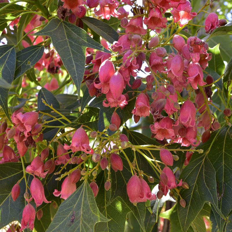 De nombreuses floraisons nous ont enchantés dont Erythrina x bidwillii, E. crista-galli, Tecoma stans, Leonotis leonorus, Limonium perezii, Hesperaloe parviflora, Aloe x nobilis, Perovskia atriplicifolia, ainsi que plusieurs drosanthemums aux couleurs vives. Au fond du jardin, un grand pistachier de l’Atlas, Pistacia atlantica, remarquable pour sa résistance à la sécheresse, est couvert de fructifications rouges.