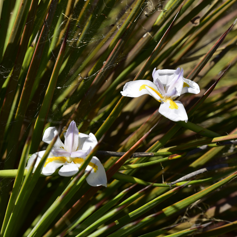 L’Afrique du Sud est bien représentée avec des bulbes dont Dietes grandiflora et le rare Cyrtanthus obliquus qui démarre sa floraison, plusieurs acacias dont Acacia karroo et une belle restionacée Cannomois virgata.