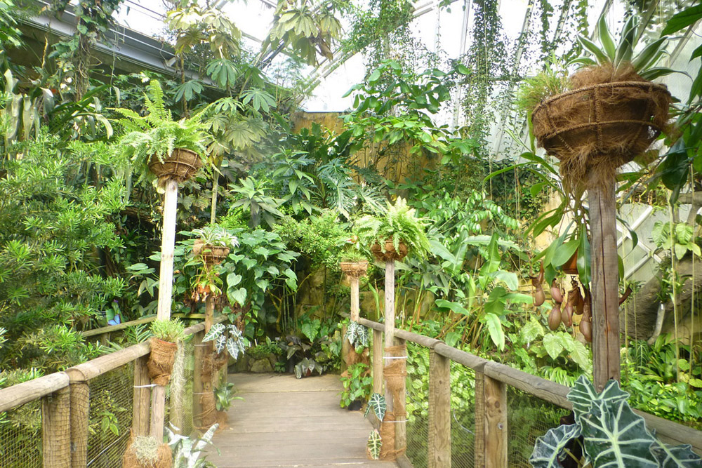 Finally, in an outlying area, we discovered the Fata Morgana tropical greenhouse. Thanks to a particularly successful construction, embedded into a slope which allows for terraced planting, the greenhouse is able to display the plants in a simulation of their natural environment. Successively, classified according to their climate zone, one walks through plants from arid regions, then from luxuriant tropical rainforests and finally plants from high subtropical mountains.