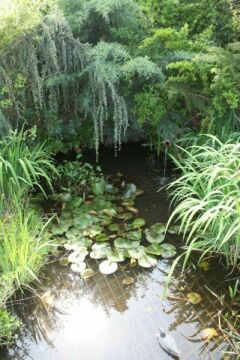 In the afternoon we travelled to the Domaine d’Orvès, Françoise Darlington’s beautifully mature garden. Surrounding a 16th-century bastide house, the garden has a stately air. From the entrance gate, emphasised by areas covered by Ceratostigma bisected diagonally by two small long waters, we took a path edged by irises and overhung by arches formed from fig trees which led up to a shaded terrace with more formal ponds edging it. Behind the house, the garden with lovely white Romneya, growing taller than I have seen in the UK, leads to an old chapel and a wooded area with many unusual plants and shrubs.