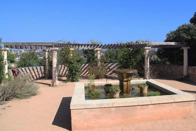la médecine, la magie, la cuisine (aromates & épices) , et la cosmétique (parfums..) en cheminant le long de pergolas, tonnelles, fontaines, bassins et petits amphithéâtres. A la nature domestiquée, se mêlent aussi des composantes de l’architecture antique.