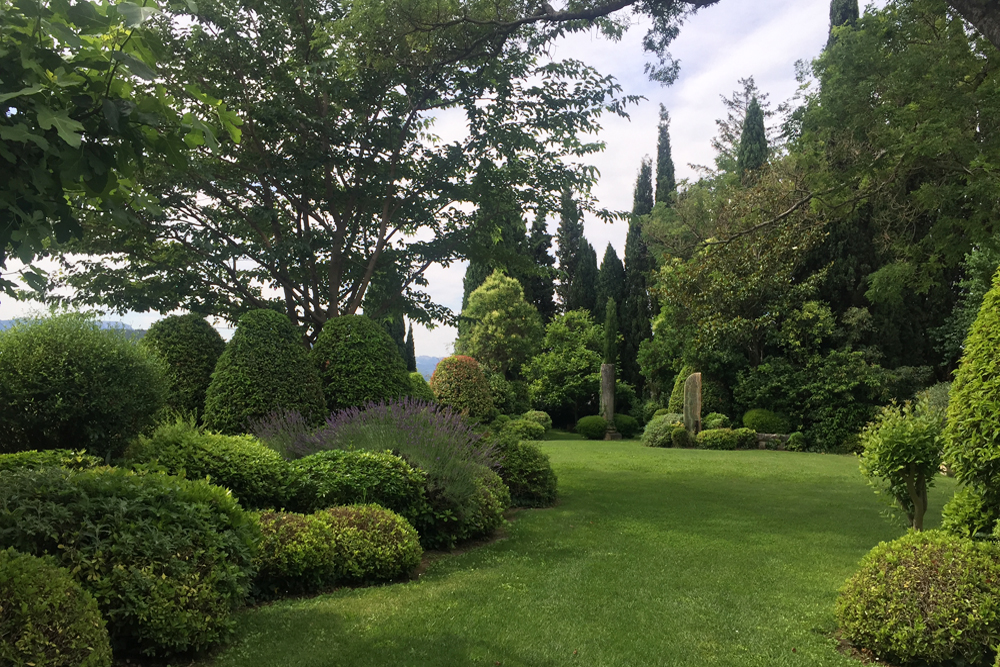 Alain Idoux initially trained as a sculptor, coming to landscape design later in life having worked with the iconic Nicole de Vésian. The areas he designed in the late nineties are mainly close to the chateau and reflect his signature clipped styling of shrubs and elegant pencil cypresses.