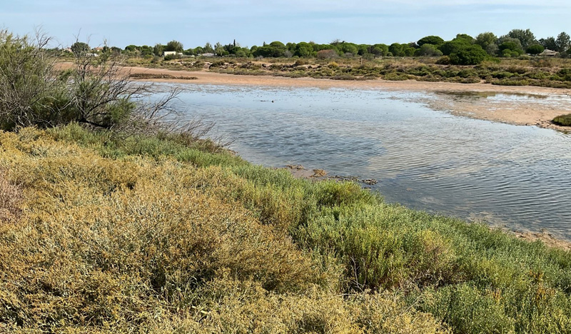 In winter the water level is controlled to attract ducks and water birds for breeding in the spring, however during the migratory period, the lagoon is kept dry. Birds feed on worms in the mud before crossing the Mediterranean. This summer fewer species of birds have been noted due to the drought.