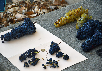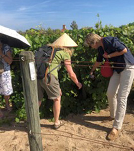 Under the guidance of one of the eight technicians in charge of the maintenance of this vineyard, we ran through the huge collection of more than 3000 grape varieties, each variety being represented by 5 vine plants. Because of the location of the site, on the coastal strip of the l’étang de Thau, the vines are grown in sandy soil, free of the agents responsible for two serious vine diseases, Phylloxera and the nematode Xiphinema index, the vector of the Court-Noué virus. The climate makes it possible to grow almost any grape variety from vineyards around the world.
