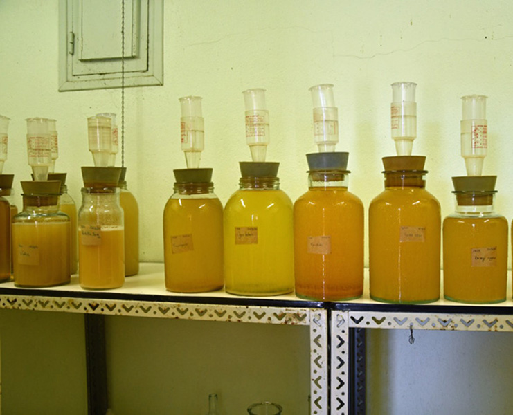Each year, 60 grape varieties are vinified. This is carried out in small quantities in glass bottles. It is not intended for sale but is part of the monitoring and characterising process for each grape variety.