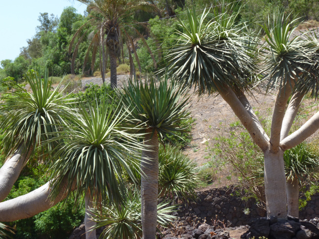 Beaucoup de genres « méditerranéens », connus de nous tous, poussaient avant sur l’île. Aujourd’hui, les lavatères, les hypericums et les sauges sont très rares et difficiles à trouver. Néanmoins, de nombreuses endémiques sont exceptionnelles. La giroflée des Canaries, Erysimum scoparium fut découverte pour la première fois par Pierre Broussonet qui est né à Montpellier à la fin du 18ème siècle. Et le dragonnier à l’allure si particulière, Dracaena draco, qui est lui, comme par hasard, une plante de la famille des monocotylédones.