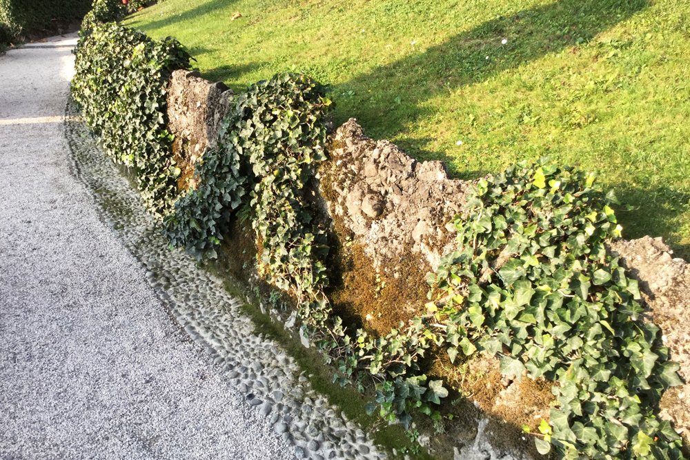 Il y a de beaux exemples de topiaires à la fois formels et informels. Une flopée d’Hedera helix grimpe le long des vieux murs, des myriades d’elaeagnus et de romarin taillé couvrent et soulignent les pentes et les allées.