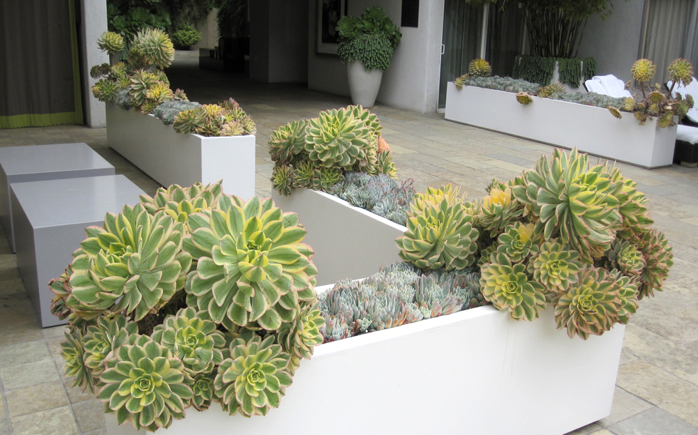 Au lieu des pélargoniums et pétunias traditionnels, créez de belles potées de succulents tels que le drosanthemum, le crassula, le sedum et les cactus, qui ont besoin de très peu d’eau et que vous pouvez laisser tranquillement quand vous partez en vacances.