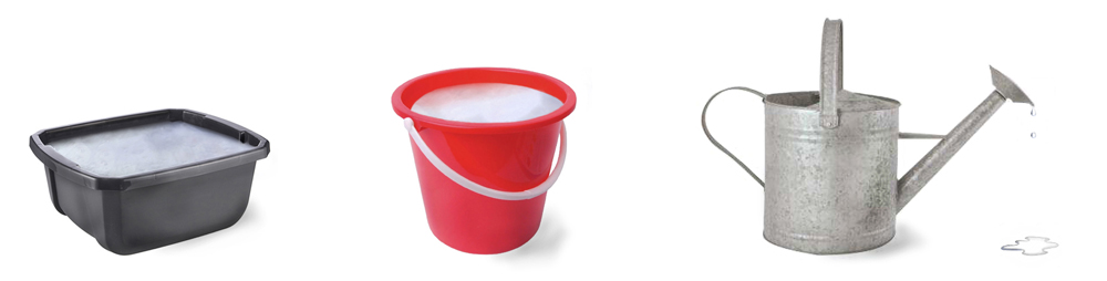 La stratégie la plus générale et la plus économique consiste à acheter un nombre suffisant de bassins en plastique pour récolter l’eau des éviers, des bains et des douches. Ensuite, vous transférez l’eau à un grand arrosoir près de la porte du jardin ou bien l’utilisez tout de suite sur vos plantes et potées. C’est très facile à faire et bon nombre de nos membres le font déjà.